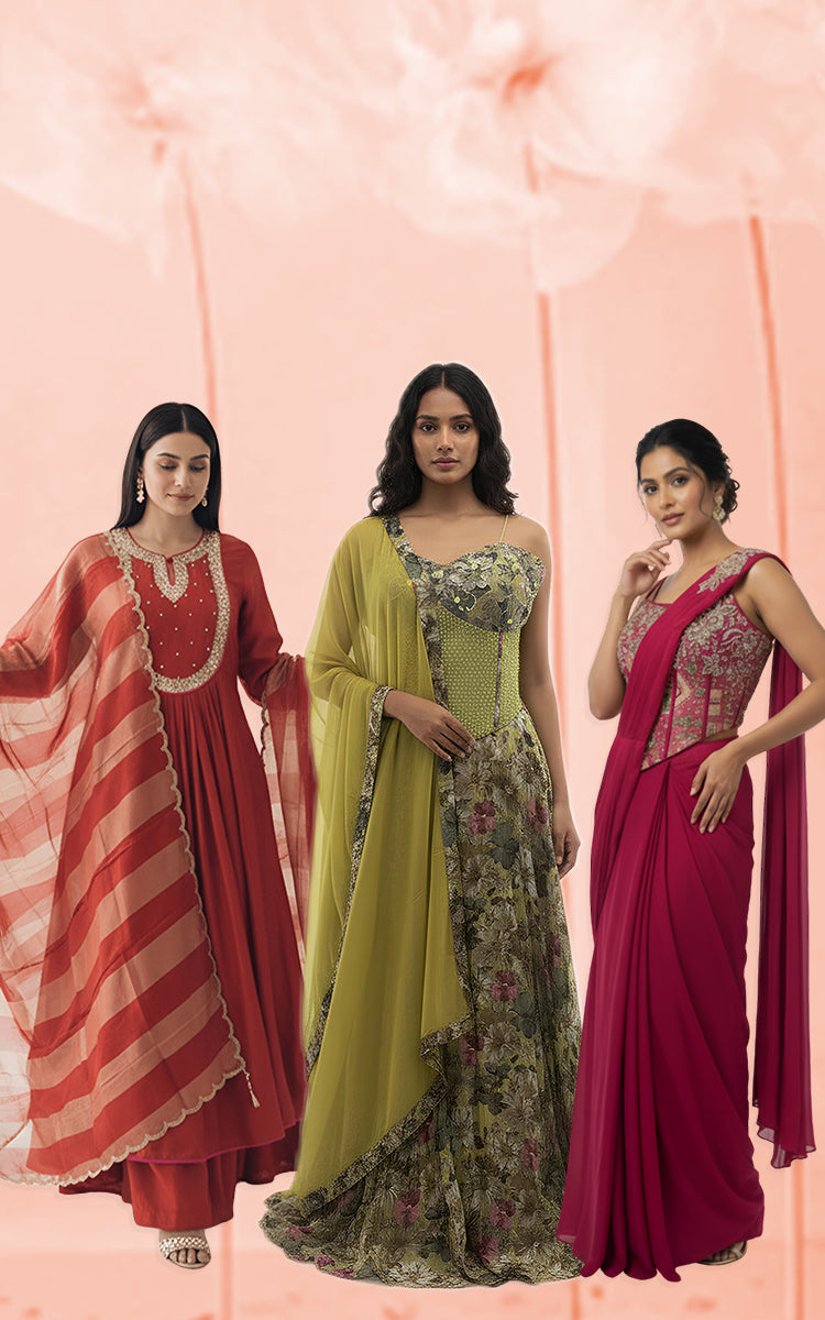 We use premium fabrics like cotton, silk, georgette, chiffon and organza to ensure comfort durability and style. Every piece is crafted with attention to detail and tested for fabric quality before shipping.